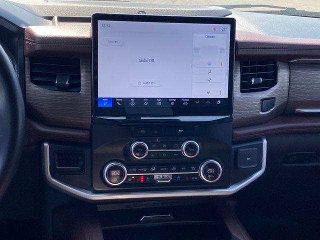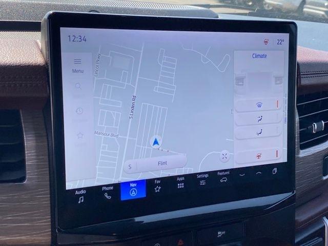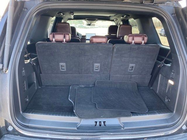 Navigation system: Connected Navigation, 12 Speakers, 3.31 Axle Ratio, 3rd row seats: split-bench, 4-Wheel Disc Brakes, ABS brakes, Adjustable pedals, Air Conditioning, Alloy wheels, AM/FM radio: SiriusXM with 360L, Auto High-beam Headlights, Auto-dimming door mirrors, Auto-dimming Rear-View mirror, Automatic temperature control, Brake assist, Bumpers: body-color, Compass, Delay-off headlights, Driver door bin, Driver vanity mirror, Dual front impact airbags, Dual front side impact airbags, Electronic Stability Control, Emergency communication system: SYNC 4 911 Assist, Exterior Parking Camera Rear, Four wheel independent suspension, Front anti-roll bar, Front Bucket Seats, Front Center Armrest, Front dual zone A/C, Front fog lights, Front reading lights, Fully automatic headlights, Garage door transmitter, Heated & Ventilated Leather Front Captain's Chairs, Heated door mirrors, Heated front seats, Heated rear seats, Heated steering wheel, Illuminated entry, Leather steering wheel, Low tire pressure warning, Memory seat, Occupant sensing airbag, Outside temperature display, Overhead airbag, Overhead console, Panic alarm, Passenger door bin, Passenger vanity mirror, Pedal memory, Power door mirrors, Power driver seat, Power Liftgate, Power moonroof, Power passenger seat, Power steering, Power windows, Radio data system, Radio: B&O Sound System by Bang & Olufsen, Rain sensing wipers, Rear air conditioning, Rear anti-roll bar, Rear reading lights, Rear window defroster, Rear window wiper, Reclining 3rd row seat, Remote keyless entry, Security system, SiriusXM w/360L, Speed control, Speed-sensing steering, Speed-Sensitive Wipers, Split folding rear seat, Spoiler, Steering wheel memory, Steering wheel mounted audio controls, SYNC 4 w/Enhanced Voice Recognition, Tachometer, Telescoping steering wheel, Tilt steering wheel, Traction control, Trip computer, Turn signal indicator mirrors, Variably intermittent wipers, Ventilated front seats, Voltmeter, Wheels: 20" Bright Machined Aluminum, Navigation system: Connected Navigation.