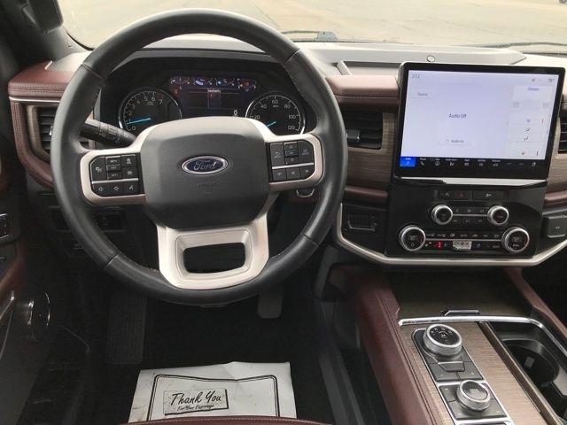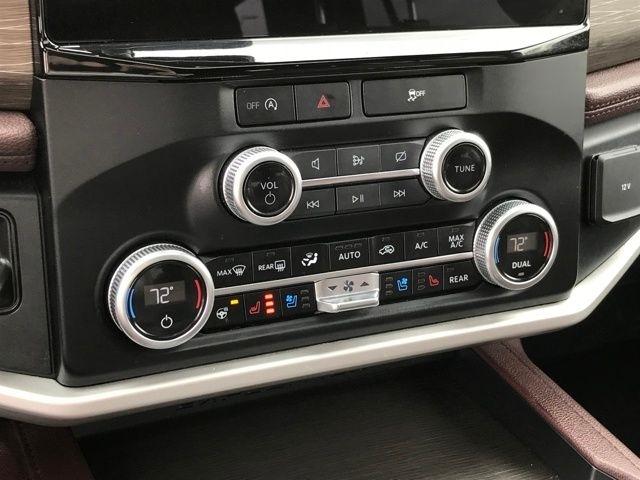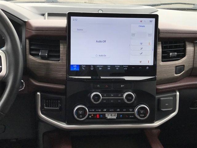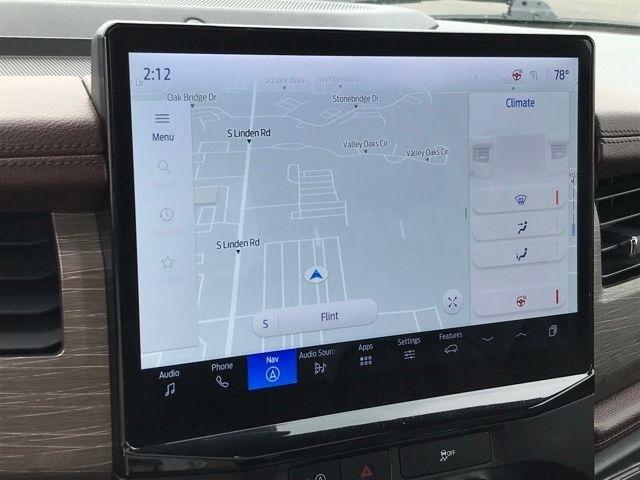 Navigation system: Connected Navigation, 12 Speakers, 3.31 Axle Ratio, 3rd row seats: split-bench, 4-Wheel Disc Brakes, ABS brakes, Adjustable pedals, Air Conditioning, Alloy wheels, AM/FM radio: SiriusXM with 360L, Auto High-beam Headlights, Auto-dimming door mirrors, Auto-dimming Rear-View mirror, Automatic temperature control, Brake assist, Bumpers: body-color, Compass, Delay-off headlights, Driver door bin, Driver vanity mirror, Dual front impact airbags, Dual front side impact airbags, Electronic Stability Control, Emergency communication system: SYNC 4 911 Assist, Exterior Parking Camera Rear, Four wheel independent suspension, Front anti-roll bar, Front Bucket Seats, Front Center Armrest, Front dual zone A/C, Front fog lights, Front reading lights, Fully automatic headlights, Garage door transmitter, Heated & Ventilated Leather Front Captain's Chairs, Heated door mirrors, Heated front seats, Heated rear seats, Heated steering wheel, Illuminated entry, Leather steering wheel, Low tire pressure warning, Memory seat, Occupant sensing airbag, Outside temperature display, Overhead airbag, Overhead console, Panic alarm, Passenger door bin, Passenger vanity mirror, Pedal memory, Power door mirrors, Power driver seat, Power Liftgate, Power moonroof, Power passenger seat, Power steering, Power windows, Radio data system, Radio: B&O Sound System by Bang & Olufsen, Rain sensing wipers, Rear air conditioning, Rear anti-roll bar, Rear reading lights, Rear window defroster, Rear window wiper, Reclining 3rd row seat, Remote keyless entry, Security system, SiriusXM w/360L, Speed control, Speed-sensing steering, Speed-Sensitive Wipers, Split folding rear seat, Spoiler, Steering wheel memory, Steering wheel mounted audio controls, SYNC 4 w/Enhanced Voice Recognition, Tachometer, Telescoping steering wheel, Tilt steering wheel, Traction control, Trip computer, Turn signal indicator mirrors, Variably intermittent wipers, Ventilated front seats, Voltmeter, Wheels: 20" Bright Machined Aluminum, Navigation system: Connected Navigation.