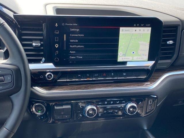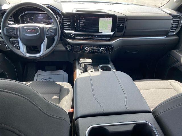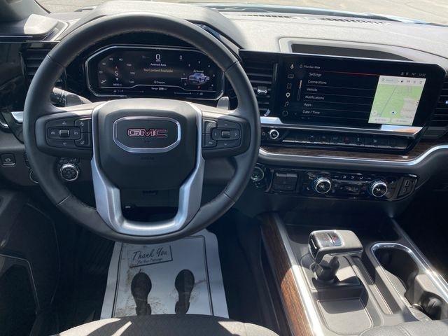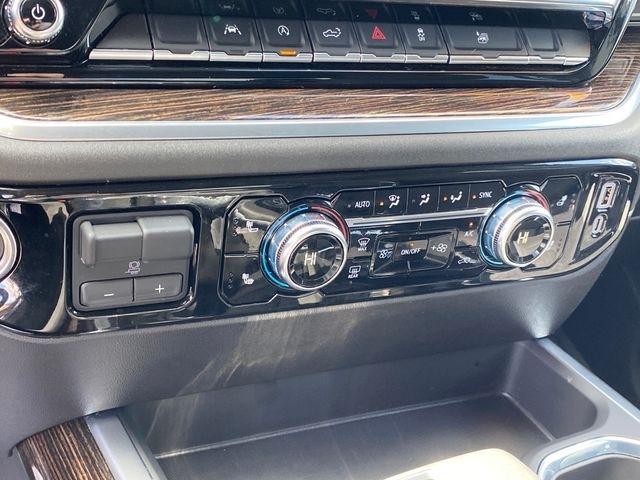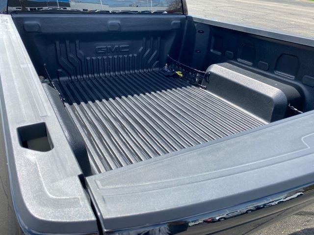 10-Way Power Driver Seat Adjuster w/Lumbar, 120-Volt Bed Mounted Power Outlet, 120-Volt Interior Power Outlet, 170 Amp Alternator, 2 Charge/Data USB Ports, 2 Charge/Data USB Ports Inside Center Console, 2 Type-C Charge-Only Rear USB Ports, 220 Amp Alternator, 4-Way Manual Passenger Seat Adjuster, 4-Wheel Disc Brakes, 6 Speakers, 6-Speaker Audio System Feature, ABS brakes, Air Conditioning, All-Weather Floor Liner (LPO), Alloy wheels, AM/FM radio: SiriusXM with 360L, Apple CarPlay/Android Auto, Auto High-beam Headlights, Auto-Locking Rear Differential, Automatic Emergency Braking, Automatic temperature control, Auxiliary External Transmission Oil Cooler, Body Color Header w/Gloss Black Mesh Grille Bars, Brake assist, Buckle to Drive, Bumpers: body-color, Cloth Seat Trim, Color-Keyed Carpeting Floor Covering, Compass, Deep-Tinted Glass, Delay-off headlights, Driver door bin, Driver vanity mirror, Drop-In Bed Liner w/Tailgate Liner (LPO), Dual front impact airbags, Dual front side impact airbags, Electric Rear-Window Defogger, Electronic Precision Shift, Electronic Stability Control, Emergency communication system: OnStar, External Engine Oil Cooling, Floor-Mounted Center Console, Following Distance Indicator, Forward Collision Alert, Front 40/20/40 Split-Bench Seat, Front anti-roll bar, Front Bucket Seats, Front Center Armrest w/Storage, Front dual zone A/C, Front fog lights, Front Frame-Mounted Black Recovery Hooks, Front Pedestrian Braking, Front reading lights, Front Rubberized-Vinyl Floor Mats, Front wheel independent suspension, Fully automatic headlights, Genuine wood dashboard insert, HD Rear Vision Camera, Heated door mirrors, Heated Driver & Front Outboard Passenger Seating, Heated front seats, Heated steering wheel, High Capacity Suspension Package, Hitch Guidance, Illuminated entry, Integrated Trailer Brake Controller, IntelliBeam Automatic High Beam On/Off, Keyless Open & Start, Lane Keep Assist w/Lane Departure Warning, LED Cargo Area Lighting, Low tire pressure warning, Manual Tilt-Wheel & Telescoping Steering Column, Navigation System, Occupant sensing airbag, OnStar Services Capable, Outside temperature display, Overhead airbag, Overhead console, Panic alarm, Passenger door bin, Passenger vanity mirror, Power Door Locks, Power door mirrors, Power driver seat, Power Front Windows w/Driver Express Up/Down, Power Front Windows w/Passenger Express Down, Power Rear Windows w/Express Down, Power steering, Power windows, Preferred Equipment Group 3SB, Push Button Start, Radio data system, Radio: Premium GMC Infotainment Audio System, Rear reading lights, Rear Rubberized-Vinyl Floor Mats, Rear step bumper, Rear window defroster, Remote keyless entry, Remote Vehicle Starter System, Security system, SiriusXM w/360L Trial Subscription, Speed control, Speed-sensing steering, Split folding rear seat, Steering Wheel Audio Controls, Steering wheel mounted audio controls, Tachometer, Telescoping steering wheel, Theft Deterrent System (Unauthorized Entry), Tilt steering wheel, Traction control, Trailering Package, Trip computer, Variably intermittent wipers, Voltmeter, Wheels: 20" x 9" High Gloss Black Painted Aluminum, Wi-Fi Hotspot Capable, Wireless Apple CarPlay/Wireless Android Auto, Wireless Charging.