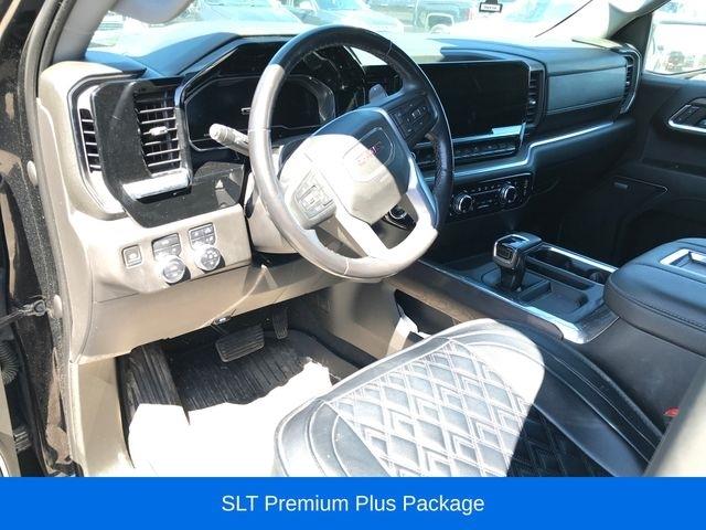 The interior of the Sierra 1500 SLT is designed with your comfort and convenience in mind. Enjoy the premium Bose 7-speaker sound system, dual-zone automatic climate control, and a host of advanced safety features, including Adaptive Cruise Control, Automatic Emergency Braking, and Lane Keep Assist.