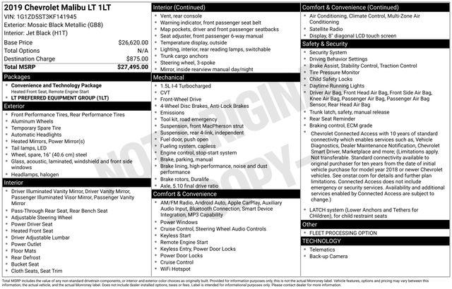 6-Speaker Audio System Feature, Apple CarPlay/Android Auto, Exterior Parking Camera Rear, Heated Driver & Front Passenger Seats, Preferred Equipment Group 1LT, Radio: Chevrolet Infotainment 3 System, SiriusXM Radio, Speed control, 17" Aluminum Wheels, 4-Wheel Disc Brakes, 6 Speakers, 6-Way Manual Front Passenger Seat Adjuster, 8-Way Power Driver Seat Adjuster, ABS brakes, Air Conditioning, Alloy wheels, AM/FM radio: SiriusXM, Automatic temperature control, Brake assist, Bumpers: body-color, Compass, Delay-off headlights, Driver door bin, Driver vanity mirror, Dual front impact airbags, Dual front side impact airbags, Electronic Stability Control, Emergency communication system: OnStar and Chevrolet connected services capable, Four wheel independent suspension, Front anti-roll bar, Front Bucket Seats, Front Center Armrest w/Storage, Front dual zone A/C, Front reading lights, Fully automatic headlights, Heated door mirrors, Illuminated entry, Knee airbag, Low tire pressure warning, Occupant sensing airbag, Outside temperature display, Overhead airbag, Overhead console, Panic alarm, Passenger door bin, Passenger vanity mirror, Power door mirrors, Power Driver Lumbar Control Seat Adjuster, Power driver seat, Power steering, Power windows, Premium Cloth Seat Trim, Radio data system, Rear anti-roll bar, Rear reading lights, Rear seat center armrest, Rear side impact airbag, Rear window defroster, Remote keyless entry, Security system, Split folding rear seat, Steering wheel mounted audio controls, Tachometer, Telescoping steering wheel, Tilt steering wheel, Traction control, Trip computer, Variably intermittent wipers, 6-Speaker Audio System Feature, Apple CarPlay/Android Auto, Exterior Parking Camera Rear, Heated Driver & Front Passenger Seats, Preferred Equipment Group 1LT, Radio: Chevrolet Infotainment 3 System, SiriusXM Radio, Speed control.