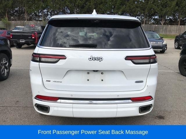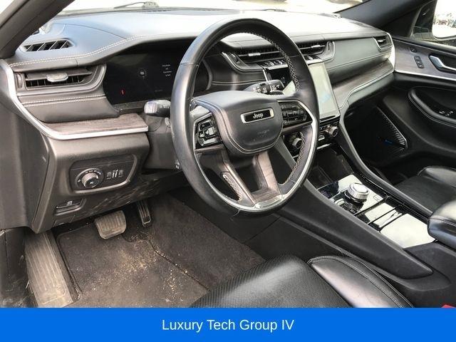 2nd Row Manual Window Shades, ATC w/4 Zone Temp Control, Driver Power Seat Back Massage, Front Passenger Power Seat Back Massage, GPS Navigation, Luxury Tech Group IV, Nappa Leather Seats (TL), Passenger Seat Memory, Power Adjust 12-Way Driver Seat, Power Adjust 12-Way Front Passenger Seat, Rearview Autodim Digital Display Mirror, Trailer Hitch Zoom, Trailer Tow Group (B), Wireless Charging Pad, 10 Speakers, 10.1" Touchscreen Display, 19 Speakers High Performance Audio, 3.45 Rear Axle Ratio, 3rd row seats: split-bench, 4-Wheel Disc Brakes, 950 Watt Amplifier, ABS brakes, Adaptive suspension, Air Conditioning, Air Susp/Activ Damping Delete Credit, Alloy wheels, AM/FM radio: SiriusXM w/360L, Anti-whiplash front head restraints, Apple CarPlay, Apple CarPlay/Android Auto, Audio memory, Auto High-beam Headlights, Auto-dimming door mirrors, Auto-dimming Rear-View mirror, Auto-leveling suspension, Automatic temperature control, Aux Battery, Brake assist, Bumpers: body-color, Compass, Connected Travel & Traffic Services, Connectivity - US/Canada, Delay-off headlights, Disassociated Touchscreen Display, Driver door bin, Driver vanity mirror, Dual front impact airbags, Dual front side impact airbags, Electronic Stability Control, Emergency communication system, Four wheel independent suspension, Front anti-roll bar, Front Bucket Seats, Front Center Armrest w/Storage, Front dual zone A/C, Front fog lights, Front reading lights, Fully automatic headlights, Garage door transmitter, Google Android Auto, GPS Antenna Input, HD Radio, Heated door mirrors, Heated front seats, Heated rear seats, Heated steering wheel, Illuminated entry, Integrated Center Stack Radio, Integrated Voice Command w/Bluetooth, Knee airbag, Leather steering wheel, Low tire pressure warning, Memory seat, Nappa Leather Seats, Navigation System, Normal Duty Suspension, Occupant sensing airbag, Outside temperature display, Overhead airbag, Overhead console, Panic alarm, ParkView Rear Back-Up Camera, Passenger door bin, Passenger vanity mirror, Power door mirrors, Power driver seat, Power Fold Seatbacks, Power Liftgate, Power moonroof: CommandView, Power passenger seat, Power steering, Power windows, Quick Order Package 22N, Radio data system, Radio: Uconnect 5 Nav w/10.1" Display, Radio: Uconnect 5 Nav w/8.4" Display, Rain sensing wipers, Rear air conditioning, Rear anti-roll bar, Rear reading lights, Rear window defroster, Rear window wiper, Reclining 3rd row seat, Remote keyless entry, Roof rack: rails only, Security system, SiriusXM Satellite Radio, SiriusXM w/360L, Speed control, Speed-Sensitive Wipers, Split folding rear seat, Spoiler, Steering wheel memory, Steering wheel mounted audio controls, Tachometer, Telescoping steering wheel, Tilt steering wheel, Traction control, Trip computer, Turn signal indicator mirrors, USB Host Flip, Variably intermittent wipers, Ventilated front seats, Voltmeter, Wheels: 20" x 8.5" Machined Face Aluminum, 2nd Row Manual Window Shades, ATC w/4 Zone Temp Control, Driver Power Seat Back Massage, Front Passenger Power Seat Back Massage, GPS Navigation, Luxury Tech Group IV, Nappa Leather Seats (TL), Passenger Seat Memory, Power Adjust 12-Way Driver Seat, Power Adjust 12-Way Front Passenger Seat, Rearview Autodim Digital Display Mirror, Trailer Hitch Zoom, Trailer Tow Group (B), Wireless Charging Pad.