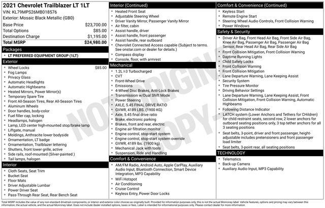 Tailored to your needs, this TrailBlazer LT comes equipped with an impressive array of features, including: